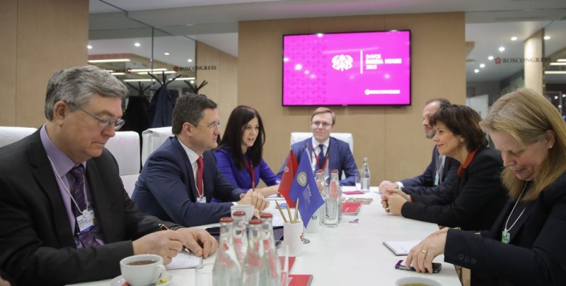 Министр энергетики Российской Федерации Александр Новак встретился с Министром по вопросам окружающей среды, транспорта, энергетики и телекоммуникаций Швейцарии Дорис Лойтхард на полях" Всемирного экономического форума в Давосе.